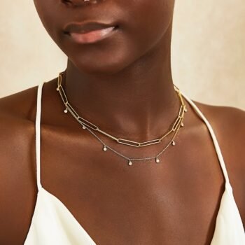 A Gorgeous double layered necklace with a textured chain and dangling crystals. This layered duo consists of two necklaces. Mix and match with our patented design.