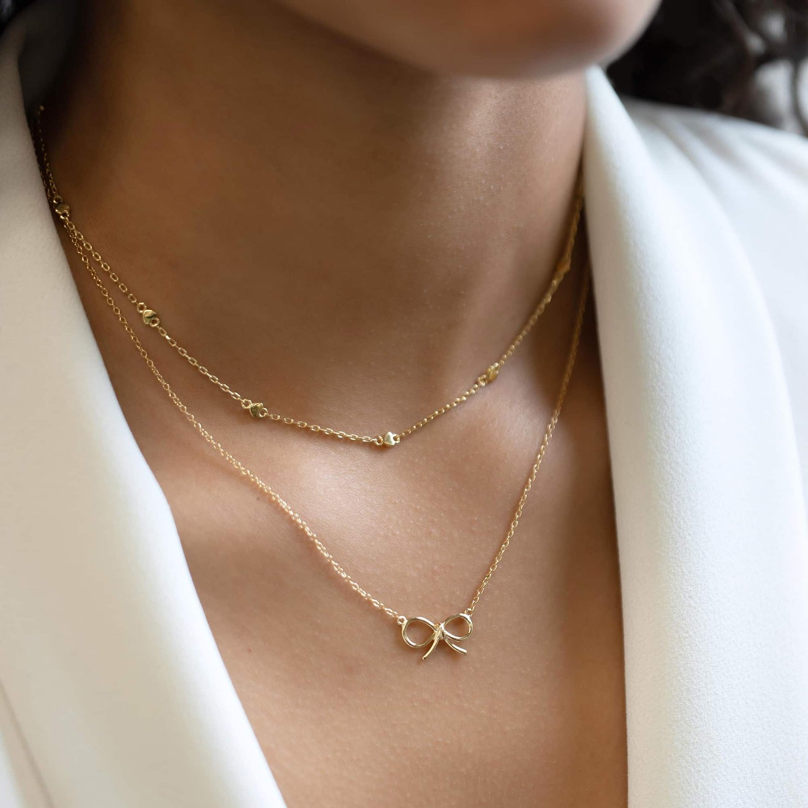 This elegant Gold Vermeil necklace features tiny hearts on a delicate diamond-cut cable chain. Pair it with other necklaces from this collection. Our patented connectors let you easily link and layer necklaces in any order you desire.
